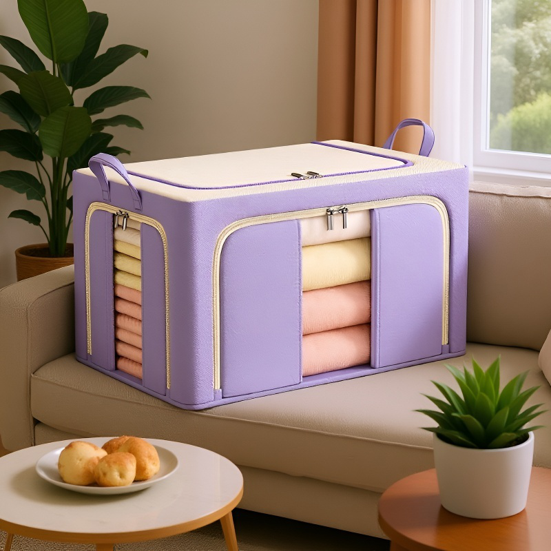 収納ボックス 折りたたみ 衣装ケース 【天面・前面・側面 3方向開閉】 鉄骨フレーム スタッキング 布団収納ケース 衣類 整頓ボックス 中身が見える窓付き 大容量 防塵 防湿 耐荷重 66L/100L