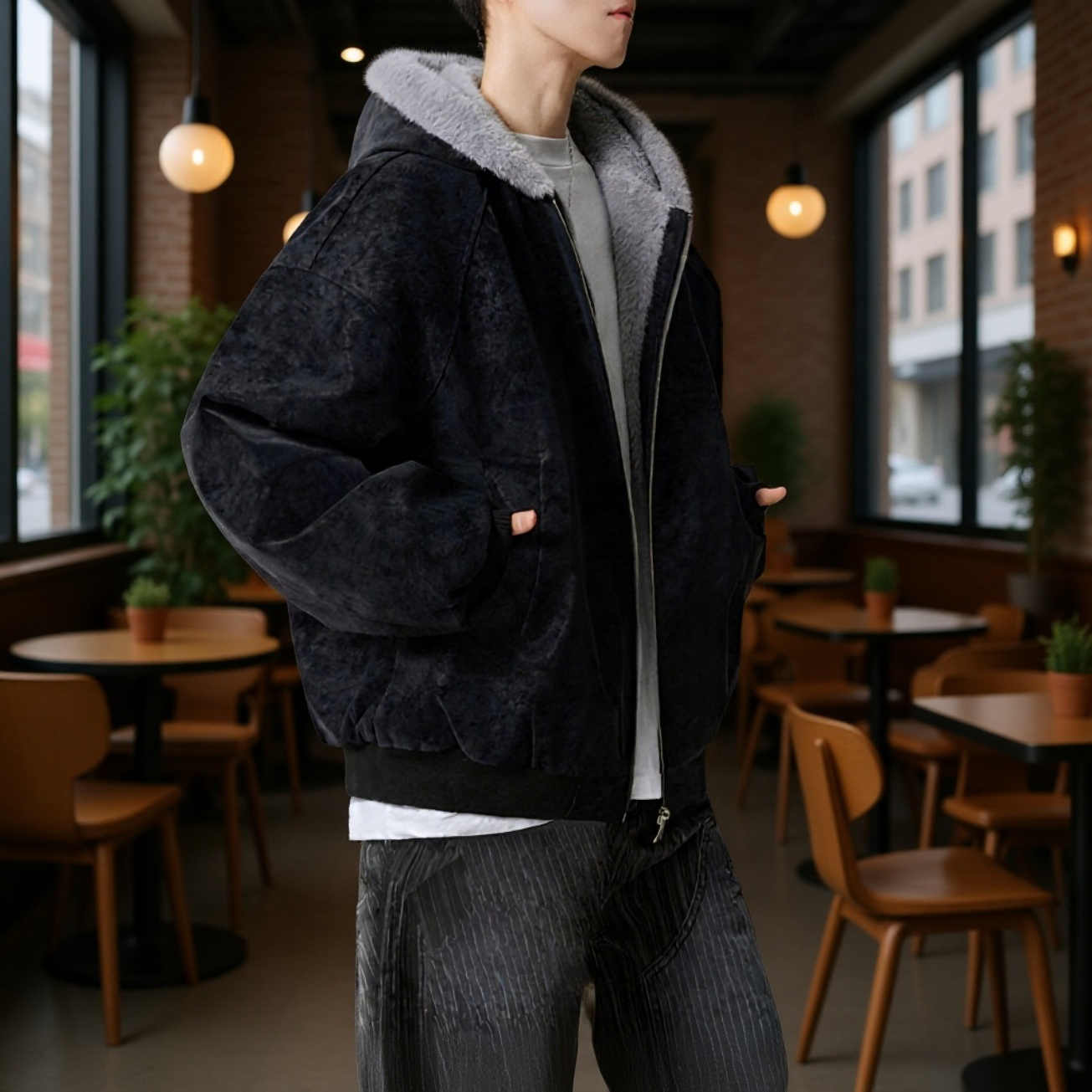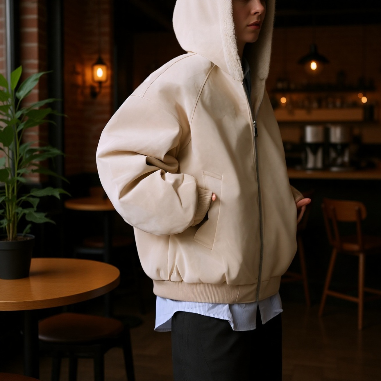 ● 高品質PUレザーを使用し、耐久性と高級感を両立。冬のアウターとして長く愛用できる一着です。